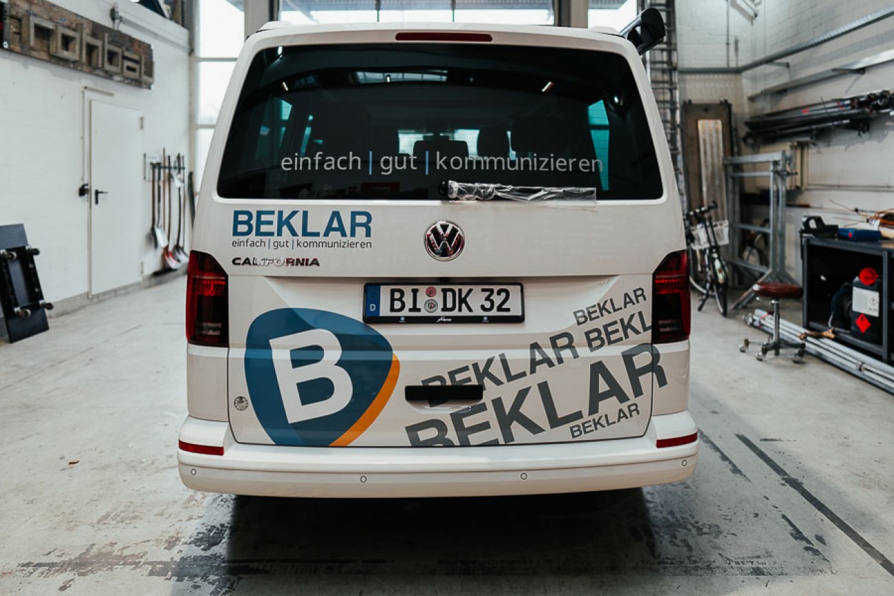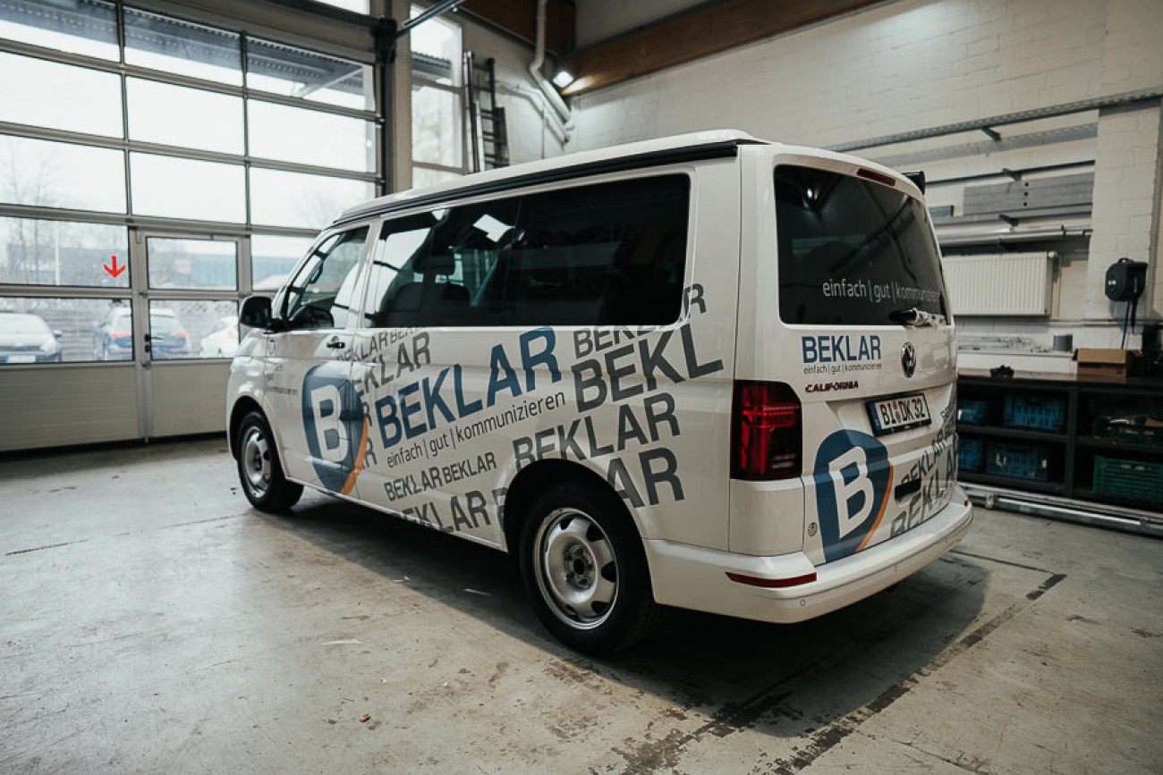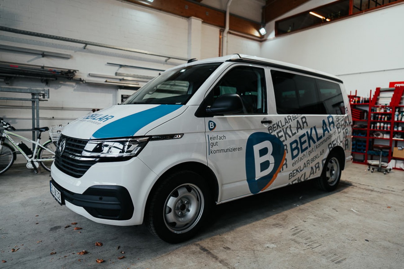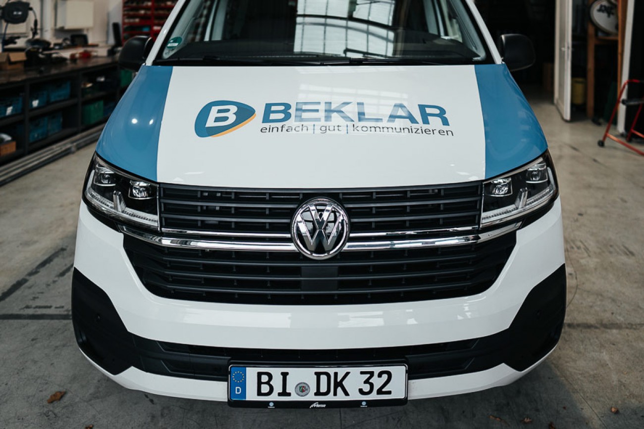 Der Transporter hat einen komplett neuen Look in der gesamten Corporate Identity von BEKLAR erhalten. Nun ist er gut sichtbar und einfach zu verstehen.