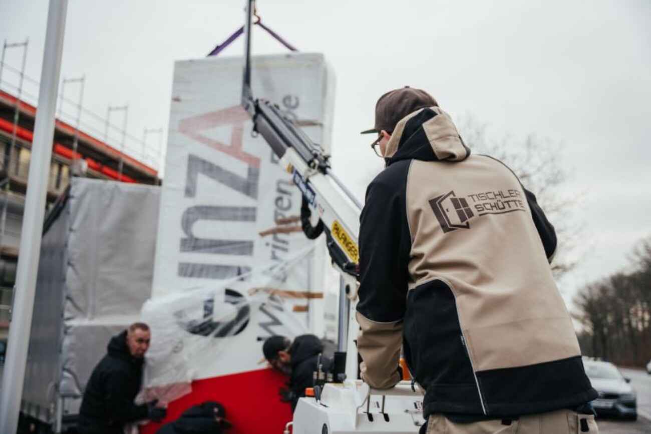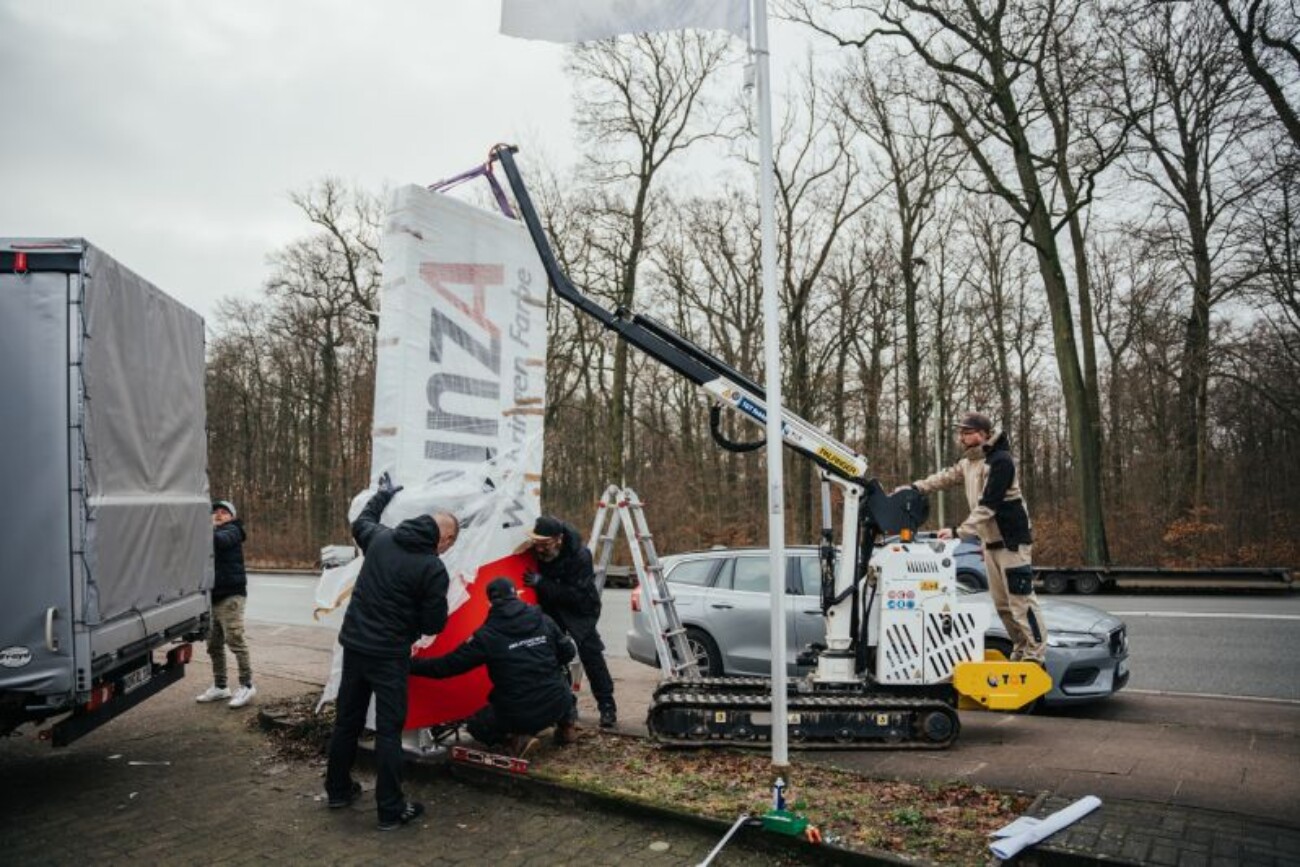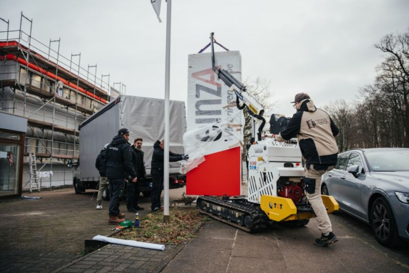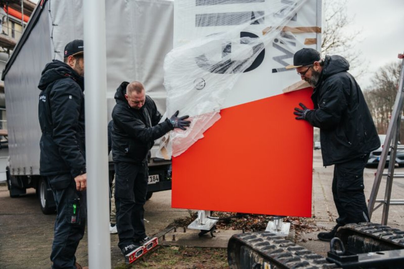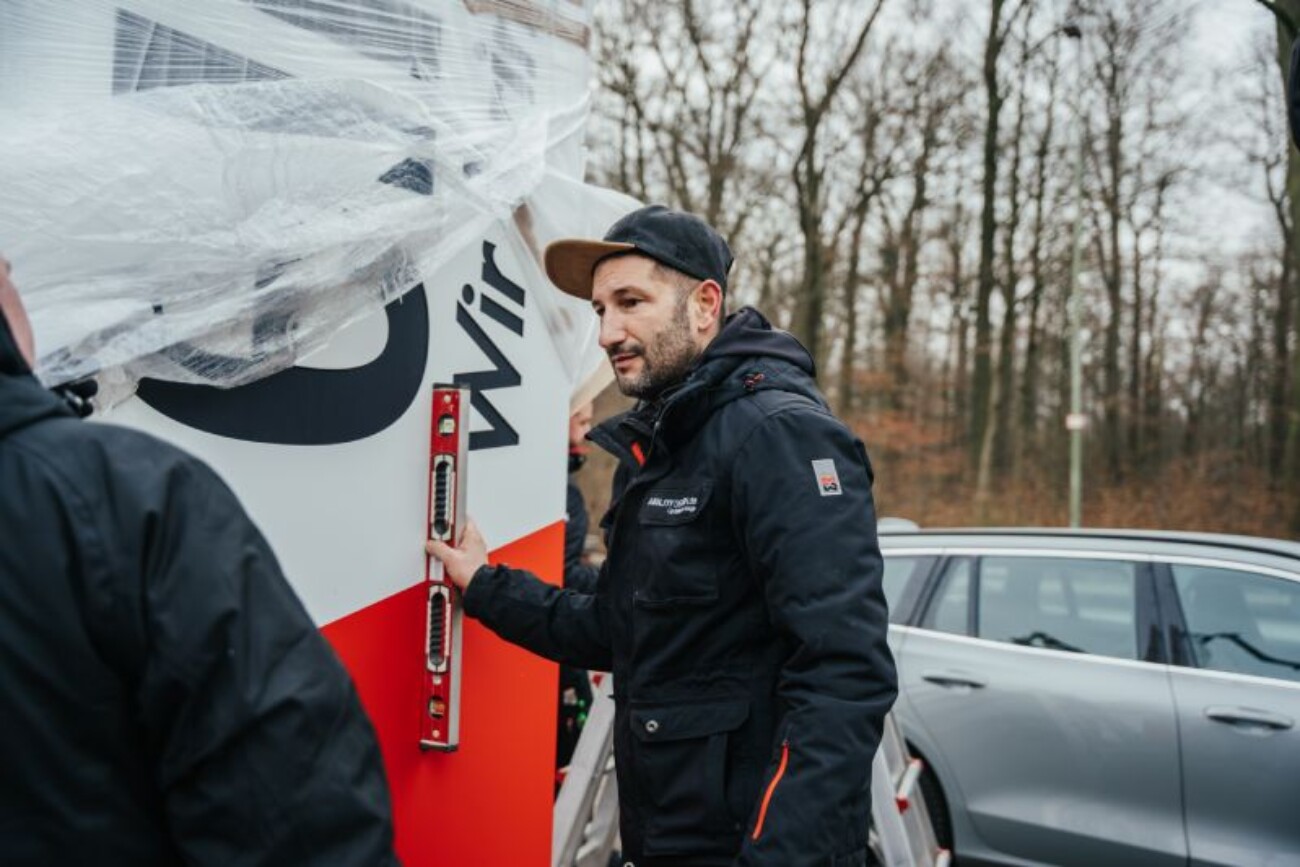 Ein Highlight des Projekts war der maßgefertigte Werbepylon, den wir vor Ort installiert haben. Ergänzt wurde die Anlage durch Profilbuchstaben mit LED-Beleuchtung, die das Firmenlogo eindrucksvoll in Szene setzen. Zudem montierten wir ein Leitsystem und Wegweiser, um die Orientierung auf dem Gelände zu erleichtern.