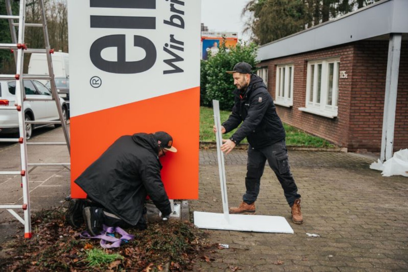 Für EinzA Farben haben wir die gesamte Außenpräsentation nach den Vorgaben des Corporate Designs (CI) des Kunden geplant und umgesetzt. Von der Projektierung bis hin zur Lieferung und Montage haben wir alle Schritte übernommen.