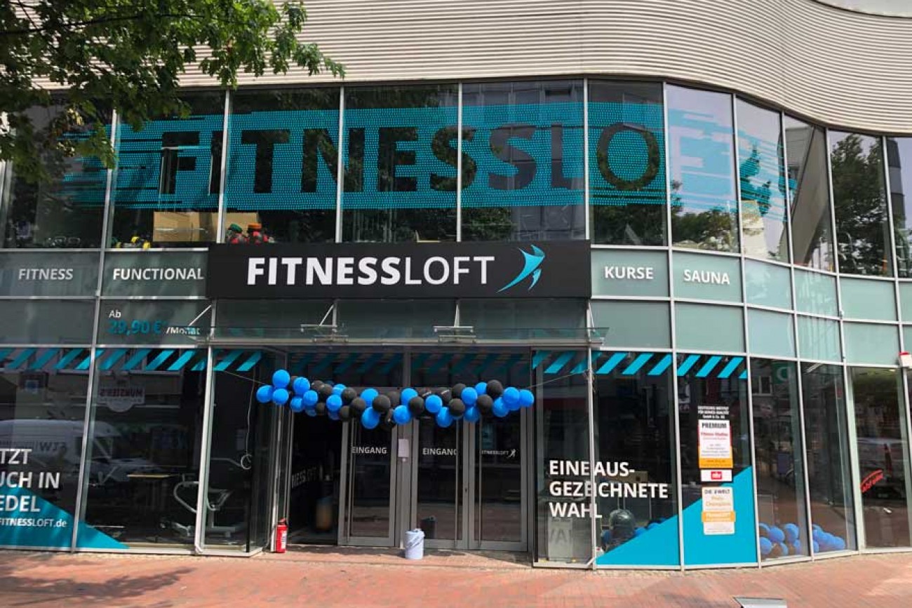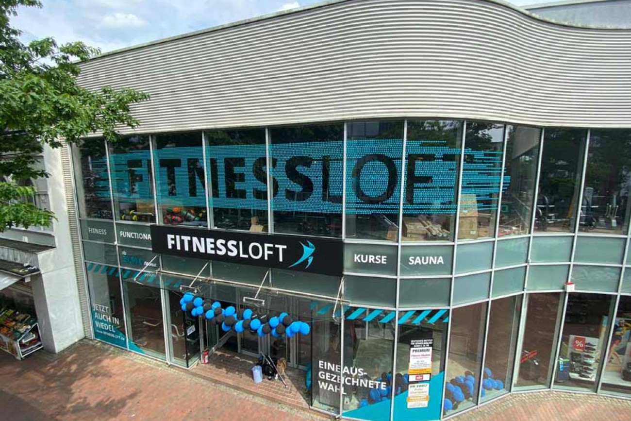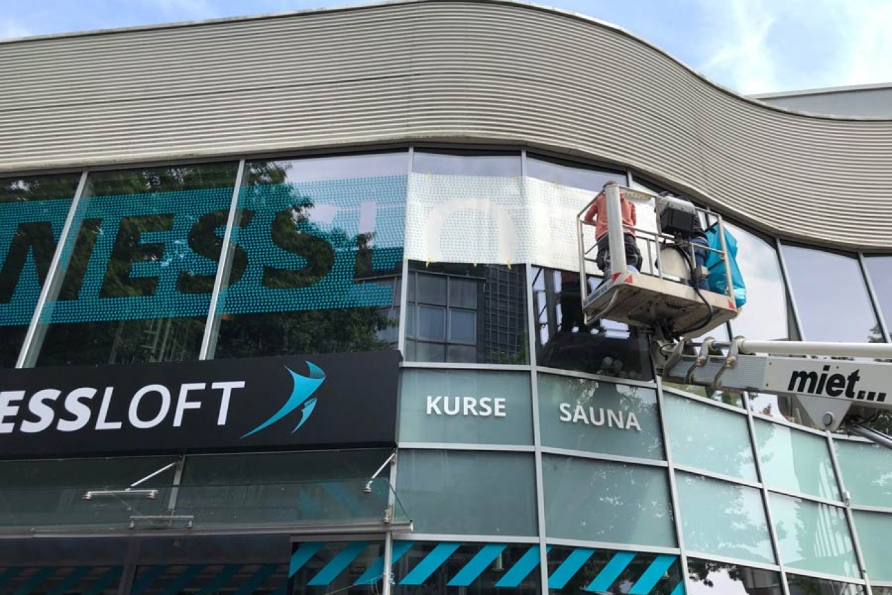 Das Fitnessloft Wedel hat sich von uns eine Beschriftung der großen Fenster im Frontbereich gewünscht.